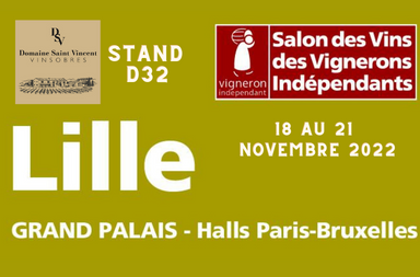 Le Domaine Saint Vincent participera au salon des Vignerons Indépendants de France de Lille Grand Palais du 19 au 22 Novembre 2021 !